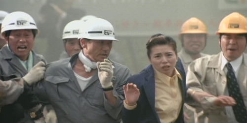 The Gotos (Mom, Taiki, and Wakaba) take the first flight available and pass the fairies off as finely made dolls. They arrive just in time to see Mr. Goto, under Belvera's control, ram a bulldozer into the mountain tomb of Desghidorah. Several cases of dynamite were strapped to the blade. Belvera's mount hits the explosives with a blast and the dynamite explodes, freeing Desghidorah. The terrible monster is extremely grumpy after all those millennium. It is cramped, hungry, and feeling a little inadequate in the vertical lift department (its wings atrophied during the ages of dark imprisonment).
