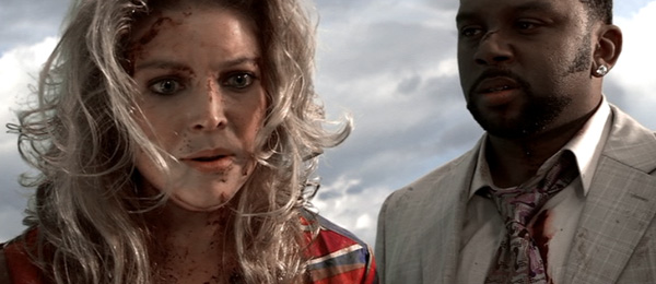 The revenge-seeking woman is going to have to hold off on the whole eye for an eye, blood debt, pound of flesh thing for a while. The same monsters that made a mess out of the bar also attacked the town. Survivors are few and far between, though those that did make it through the initial orgy of consumption are quite a colorful cast. There is a pair of midget wrestlers and their beer-drinking grandmother, a used car salesman, a meth addict, and a girl named Secrets and her boyfriend, Greg. Secrets is an annoying stereotype, because she is painted as the type who believes the universe revolves around her (or more accurately, her va-jay-jay - a term just as annoying as the concept). However, Greg is a pox upon the viewer. Some movies create characters for the audience to hate; others feature characters that make the audience hate the movie itself. Greg is the latter.