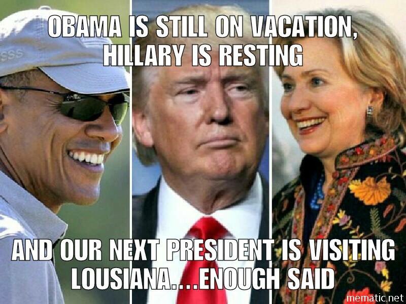 Now you are falling for the bullsh!t.  It seems clear to me that the President has stayed away because of what the governor of Louisiana said about available resources.  Instead, Trump sees an opportunity to hand out bags of potato chips and boxes of cereal and pretend he is working for the disaster relief (despite consuming resources like police protection) and get his picture taken doing it.  Get out of the wind, he'll blow you over.