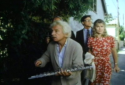 The group tracks the monster to a school, where it almost kills the Professor. Pennyworth is killed trying to "communicate with it," and a city evacuation goes into effect. Dick and Diane rig up a broadcast system and they play the xylophone to lure out the monster. Pennyworth's dying words told them to destroy "all of something" (he dies before he finishes), and they take this to mean destroy its energy. This of course doesn't work...the closets must be destroyed. Duh. The closet monster falls in love with Dick when his glasses fall off (he's a handsome dude) and carries him around San Francisco until its energy wears out and it dies. |